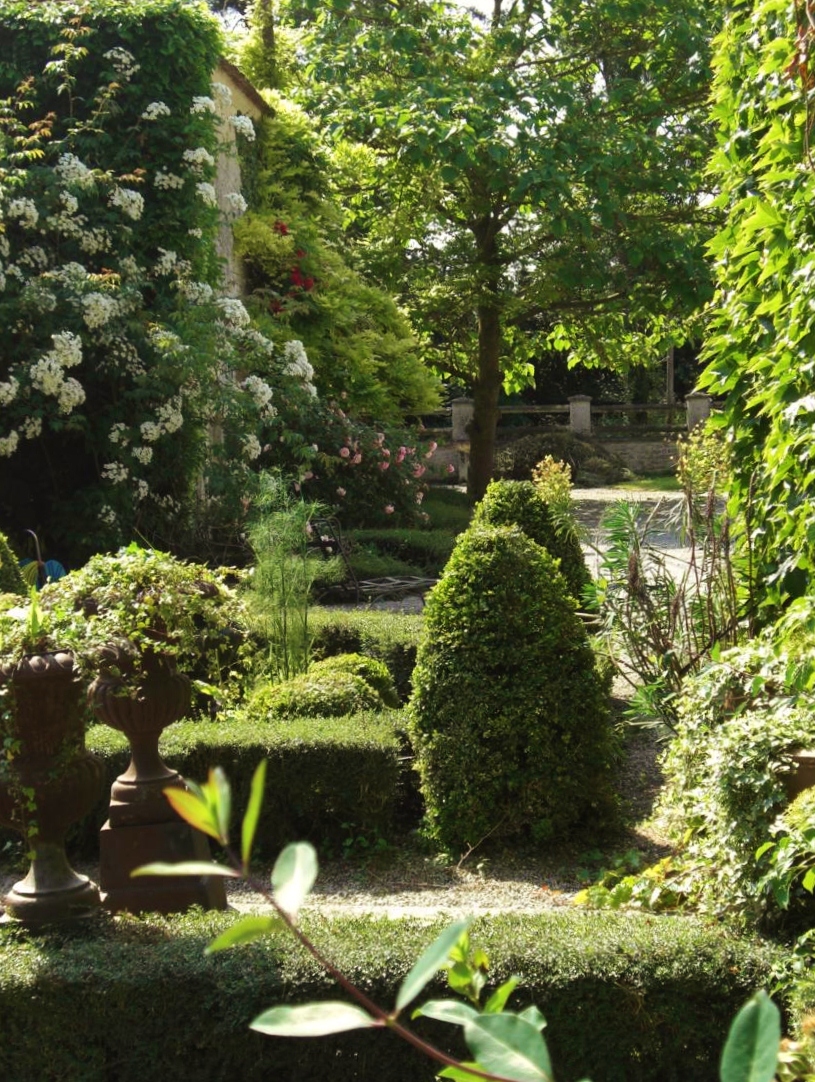 Located in the Lower Normandy region of France, the creamy stone chateau was built in the 17th and 18th centuries. The rooms have been sparingly furnished by the owner, a British fashion designer. In the surrounding grounds and gardens, we find a ruined 11th century chapel, as well as a walled vegetable garden, woodlands, jardin a la francais with fountain, ancient elm avenue, summer house, stream, paddocks, and abundant wild flowers.